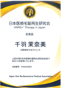 大阪梅田中央クリニックは日本国内において「HARG+療法」の検証と施設認定を行っている「日本医療毛髪再生研究会」に認定された医療機関です。