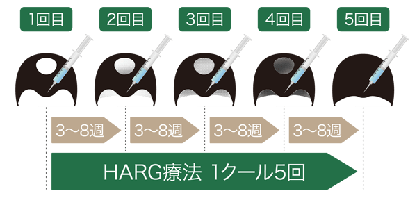 HARG+療法は、個人差はありますが3回程度の治療で効果を実感し始め、4~5回でしっかりと効果を実感していただけます。